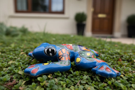 Blue Talavera-Style Frog – Handcrafted Mexican Folk Art Décor