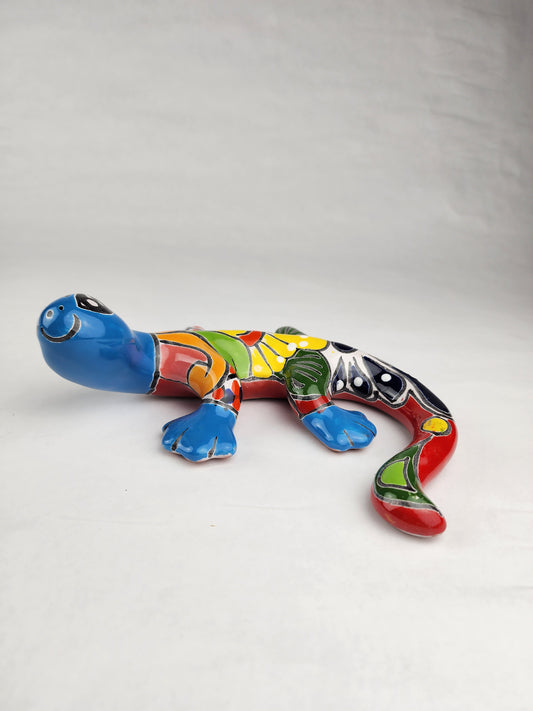Turquoise Talavera-Style Gecko – Handcrafted Mexican Folk Art Décor