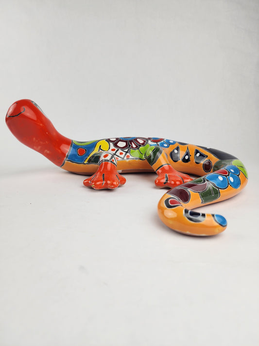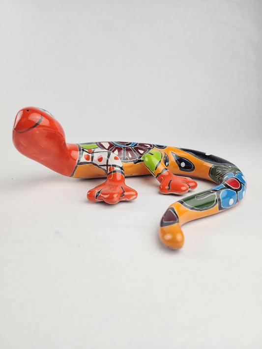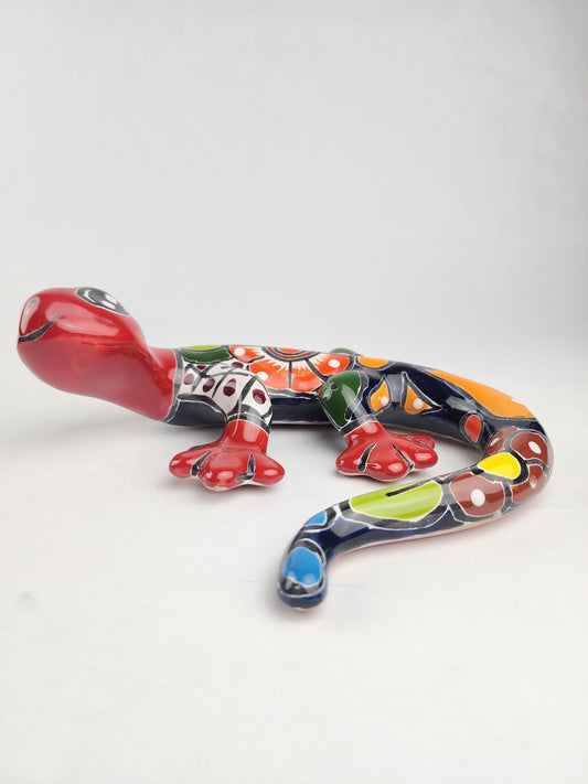Red Talavera-Style Gecko – Handcrafted Mexican Folk Art Décor
