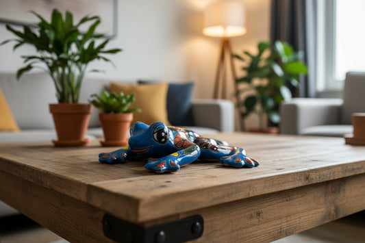 Blue Talavera-Style Frog – Handcrafted Mexican Folk Art Décor