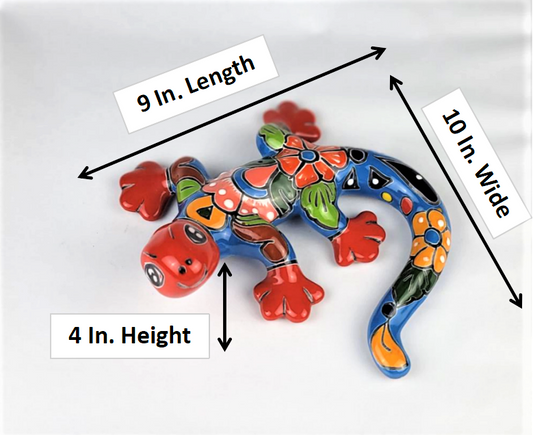Red & Blue Talavera-Style Gecko – Handcrafted Mexican Folk Art Décor