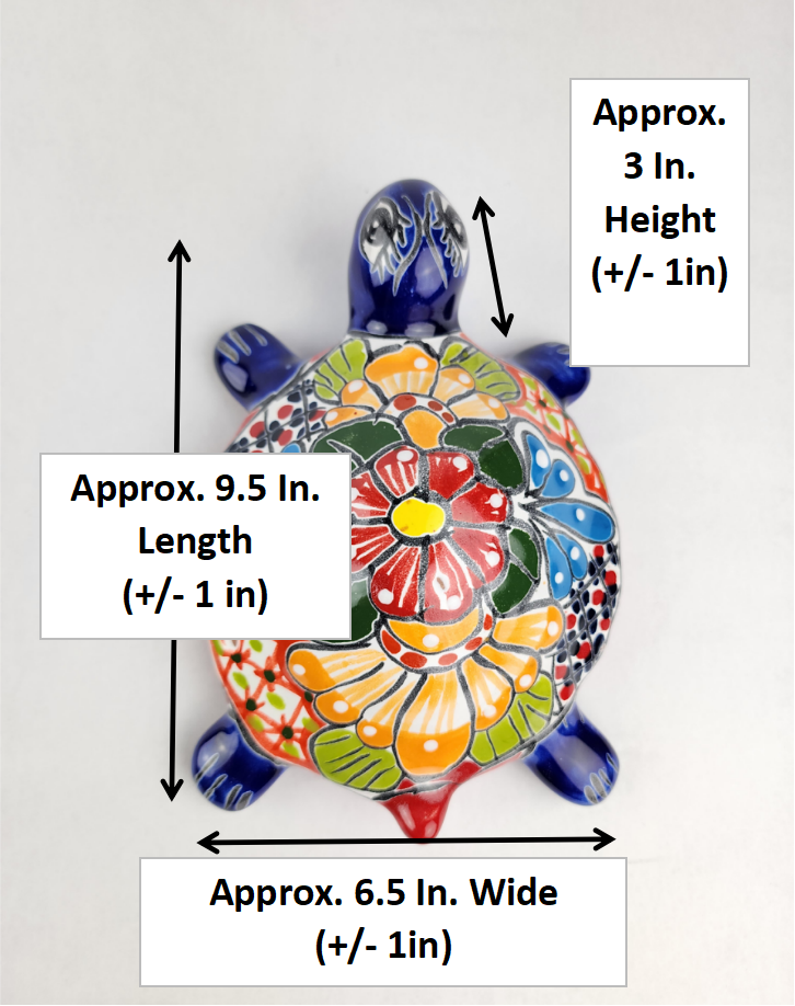 Each turtle is individually crafted by Mexican artisans using traditional pottery methods, so no two are exactly alike. With a smooth, glazed finish, this turtle resists weather and fading.