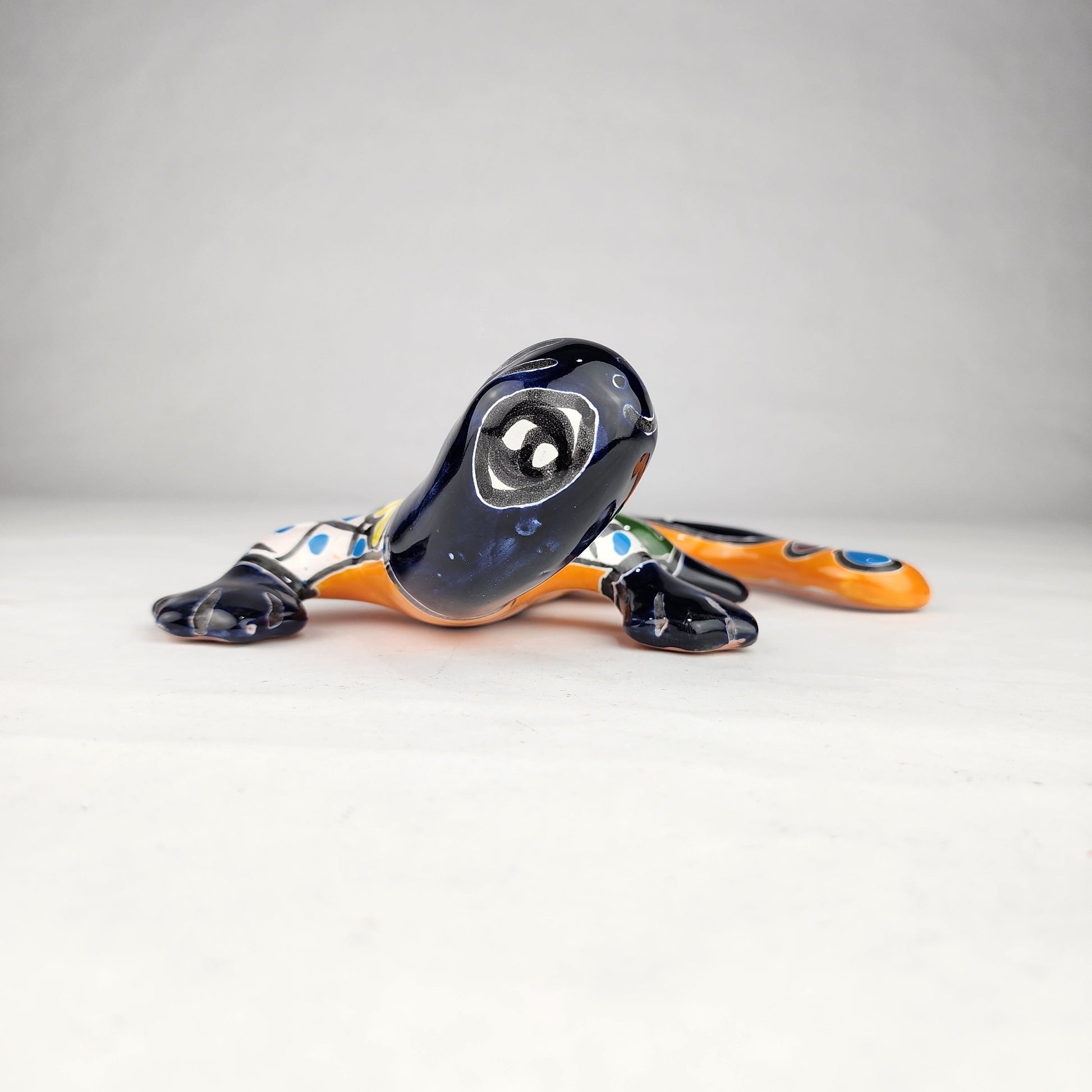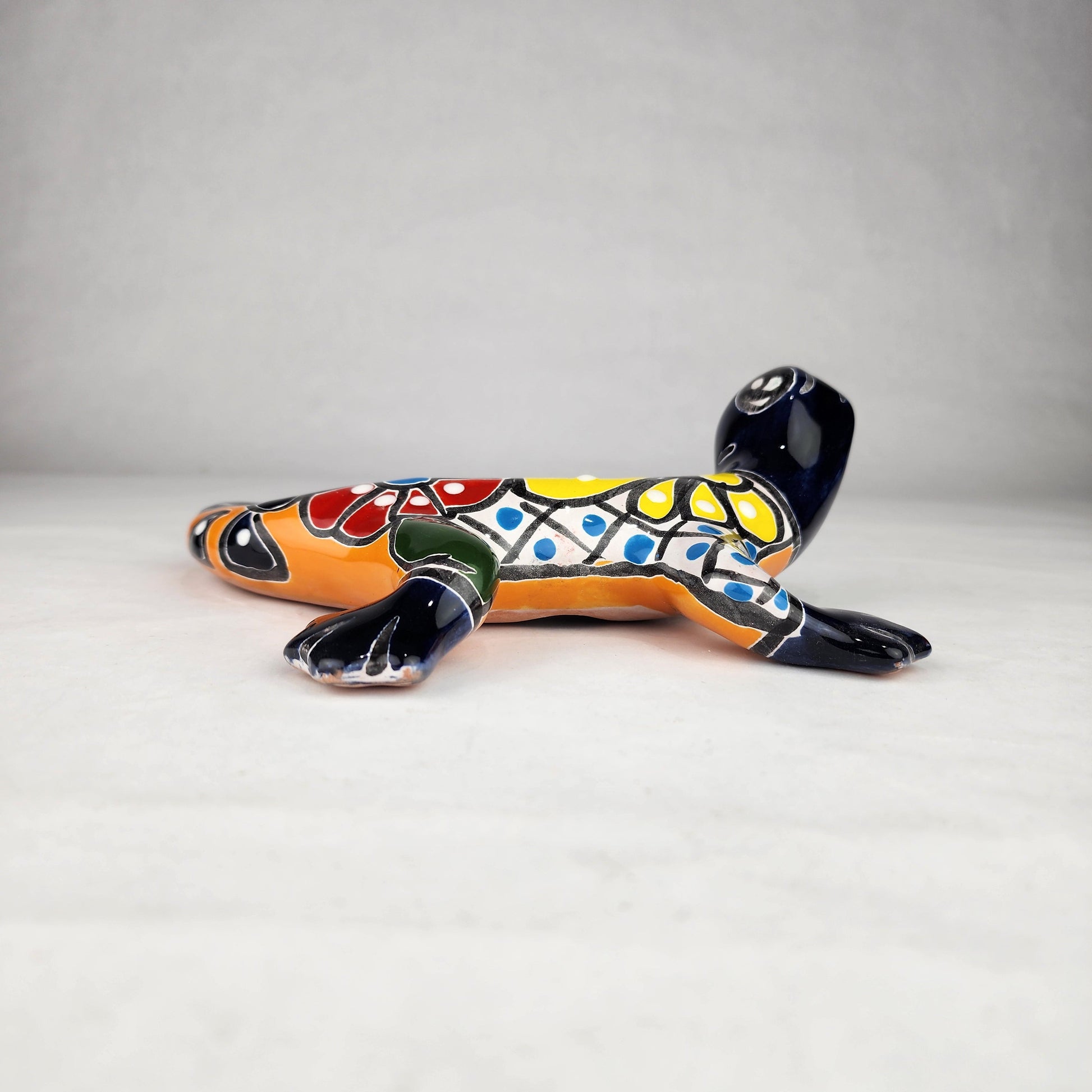 Bring vibrant charm to your space with this blue-dominant Talavera-style gecko, handcrafted and hand-painted by artisan families in Mexico. A one-of-a-kind ceramic accent curated by Casa Villa Arte.