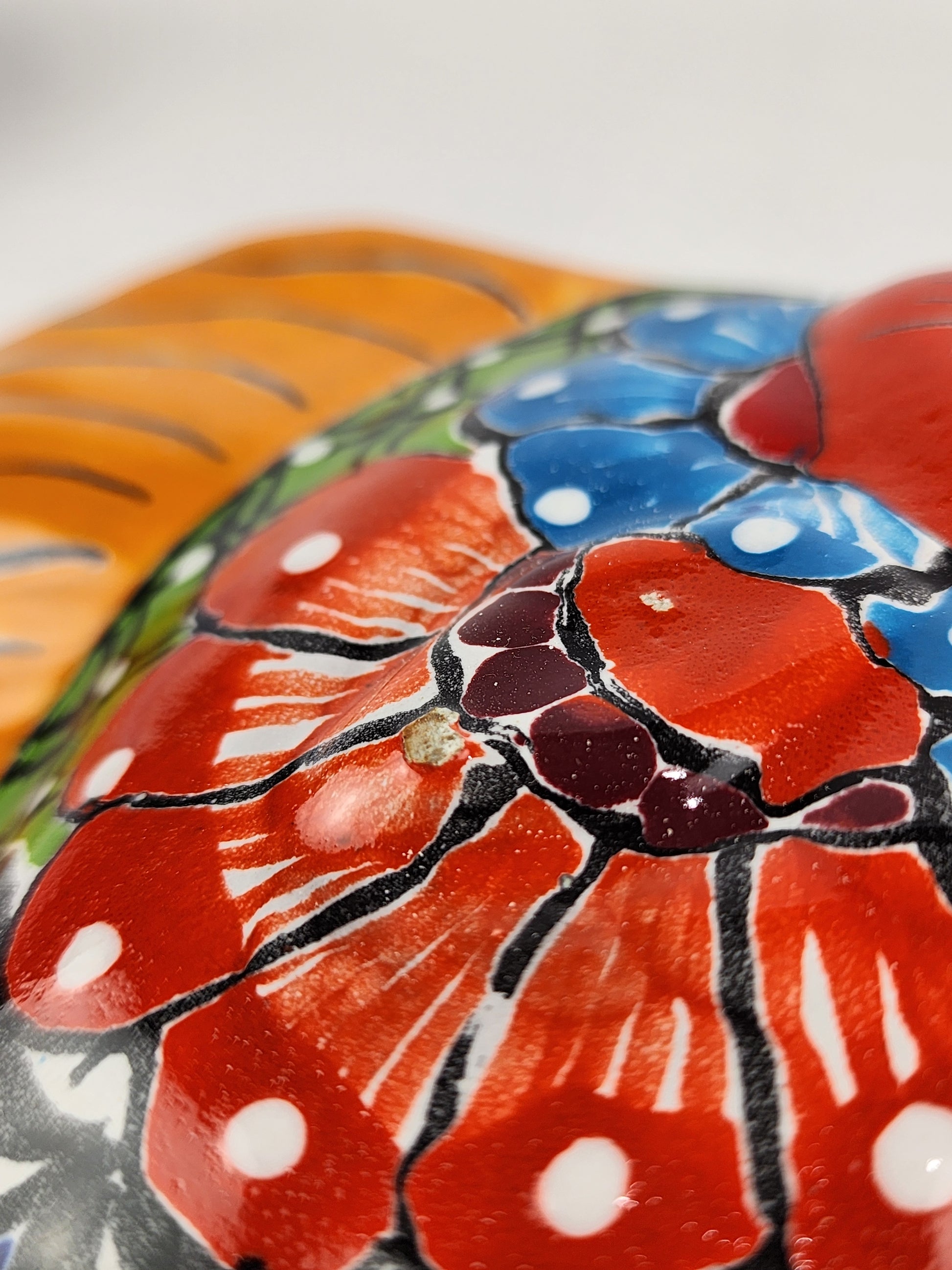 Turn any wall into a gallery of color with this creative Talavera wall fish. Hand-painted in Mexico, each one bursts with personality, making it a unique focal point in living rooms, kitchens, or creative studios.