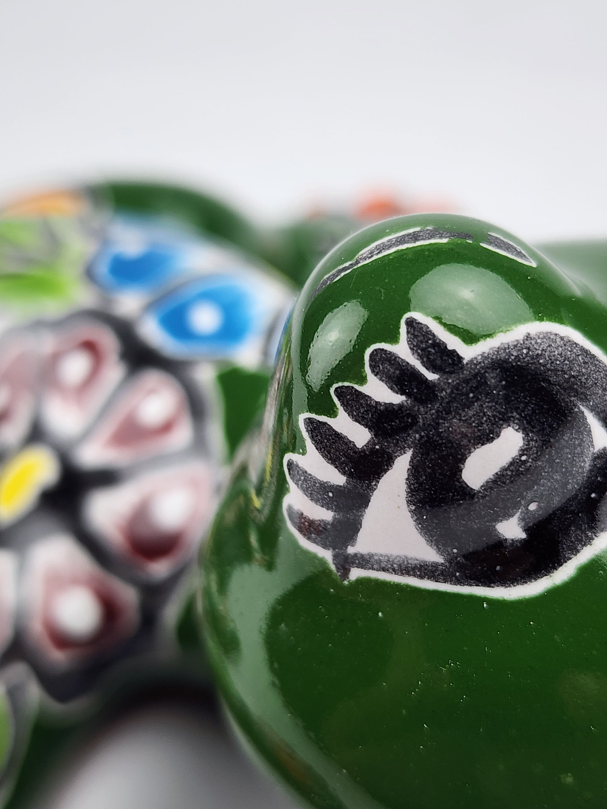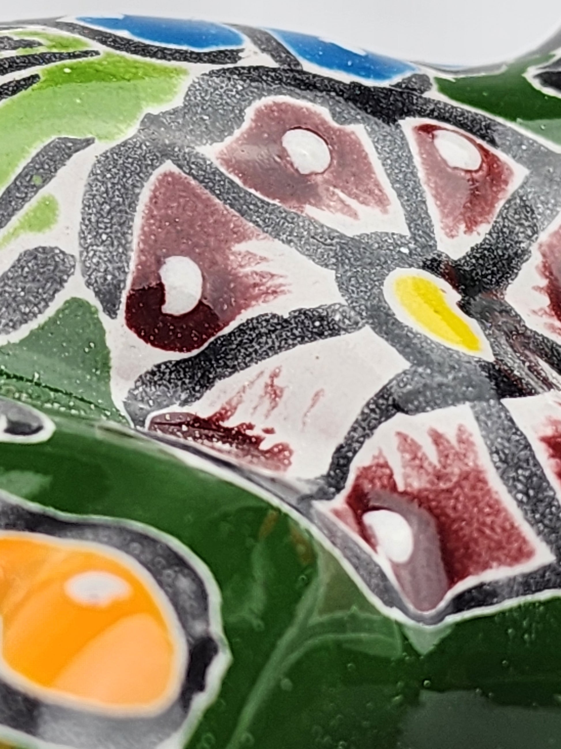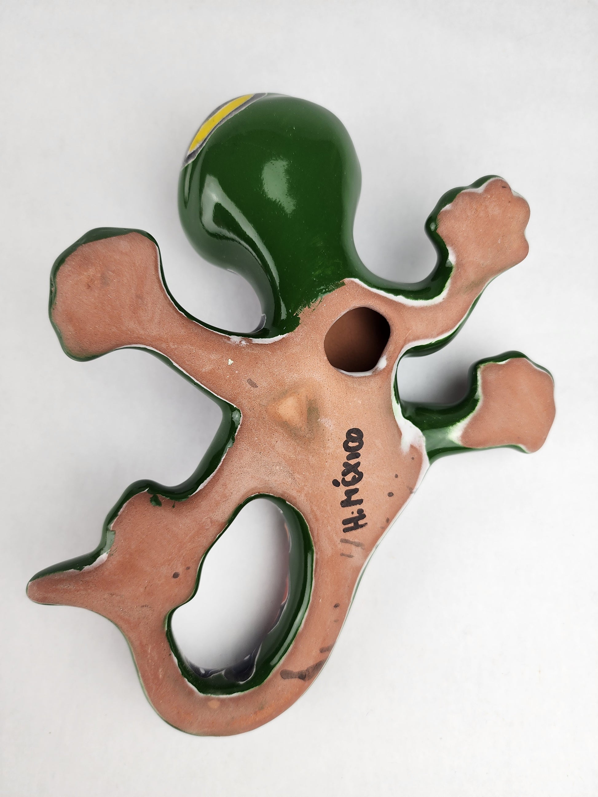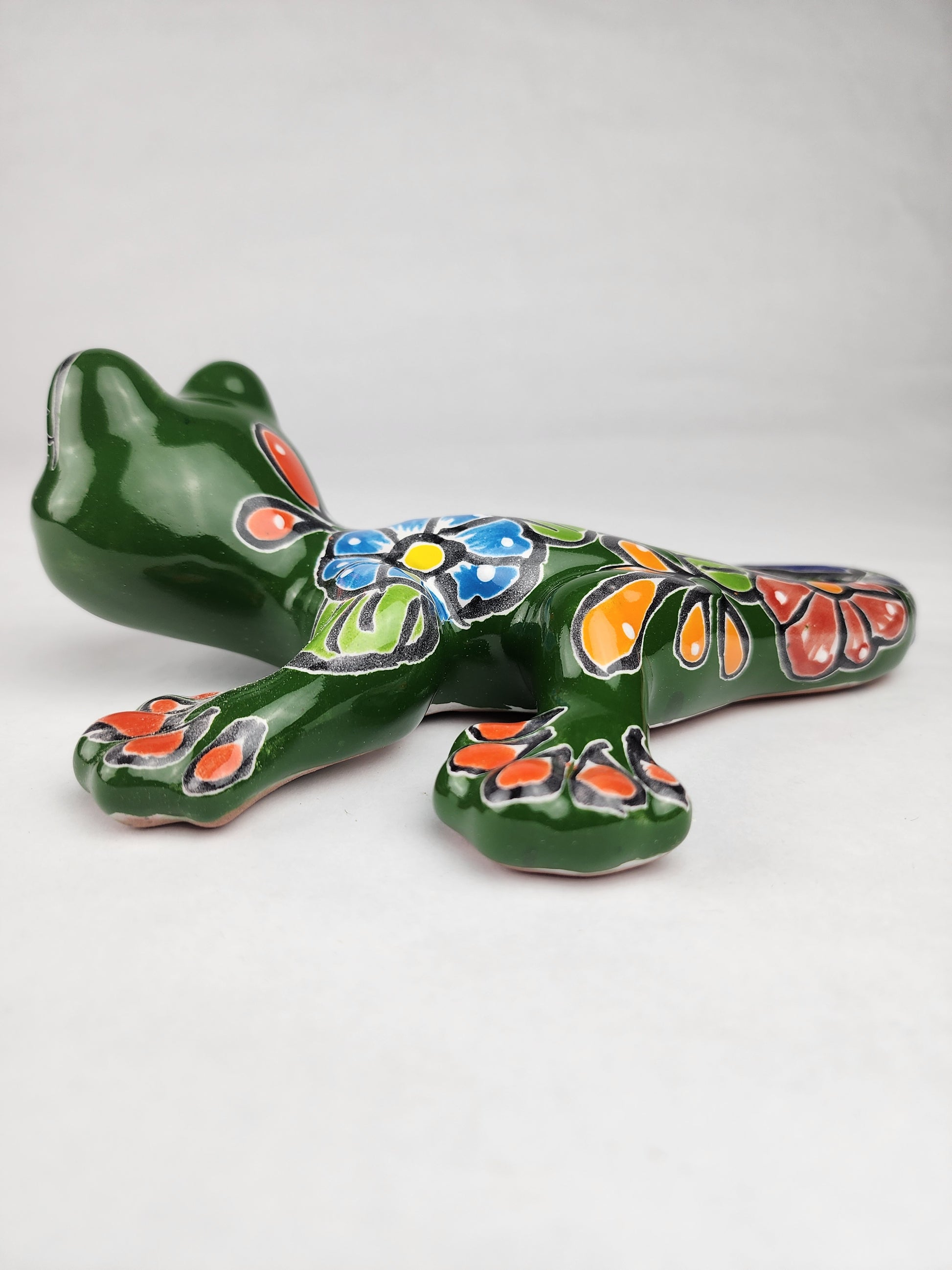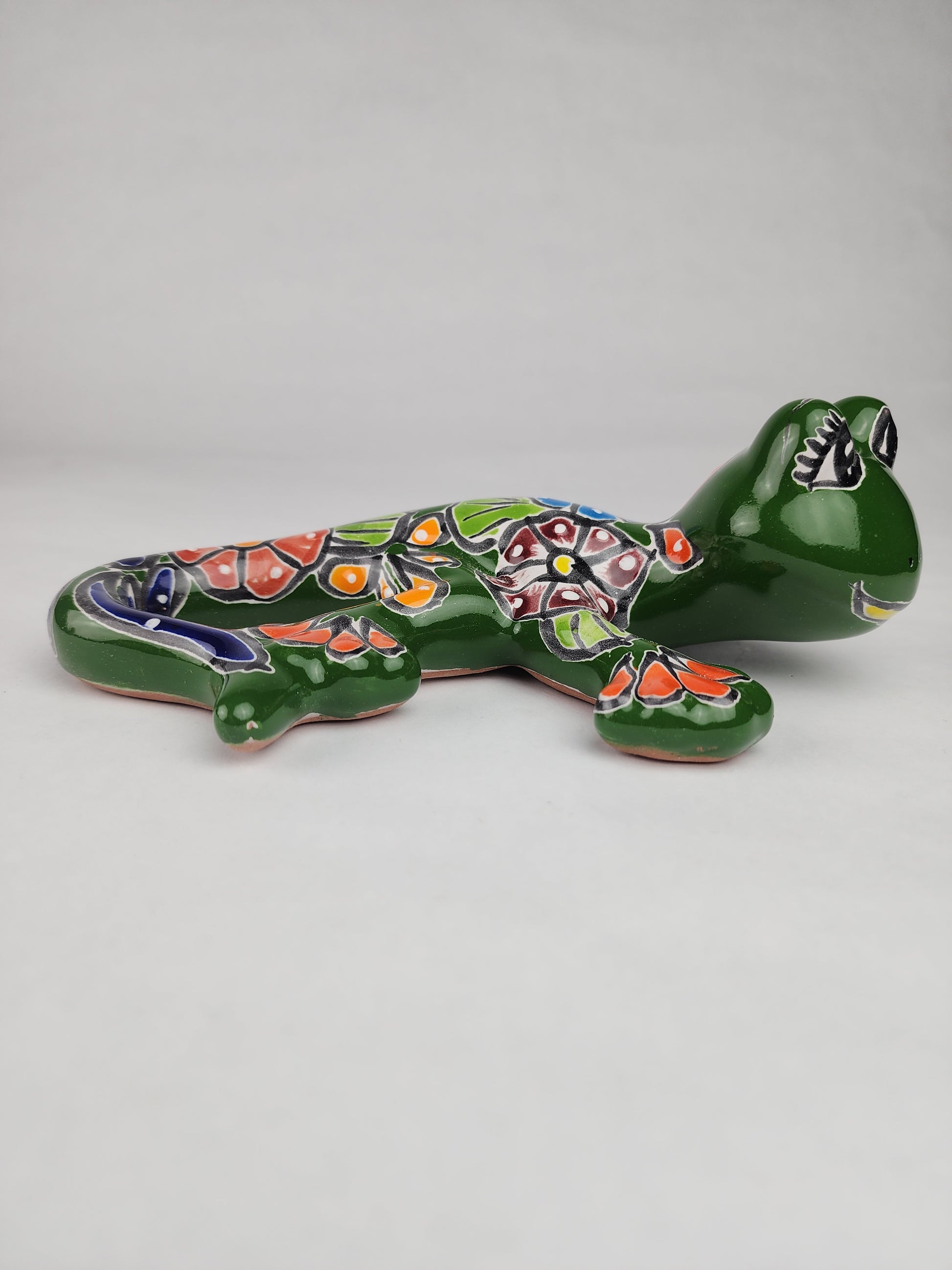 Brighten your garden or patio with this Green Talavera Salamander, a ceramic lizard painted in bold green with colorful Talavera patterns. Durable and artisan-made, it adds vibrancy and cultural charm to indoor or outdoor walls.