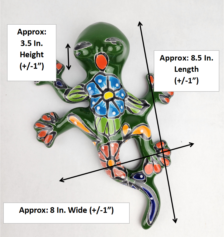 Celebrate Mexican tradition with this Green Talavera Salamander, hand-painted in a bold green base with colorful folk art details. Each ceramic lizard is made by artisans in Mexico, ensuring that no two pieces are exactly alike.