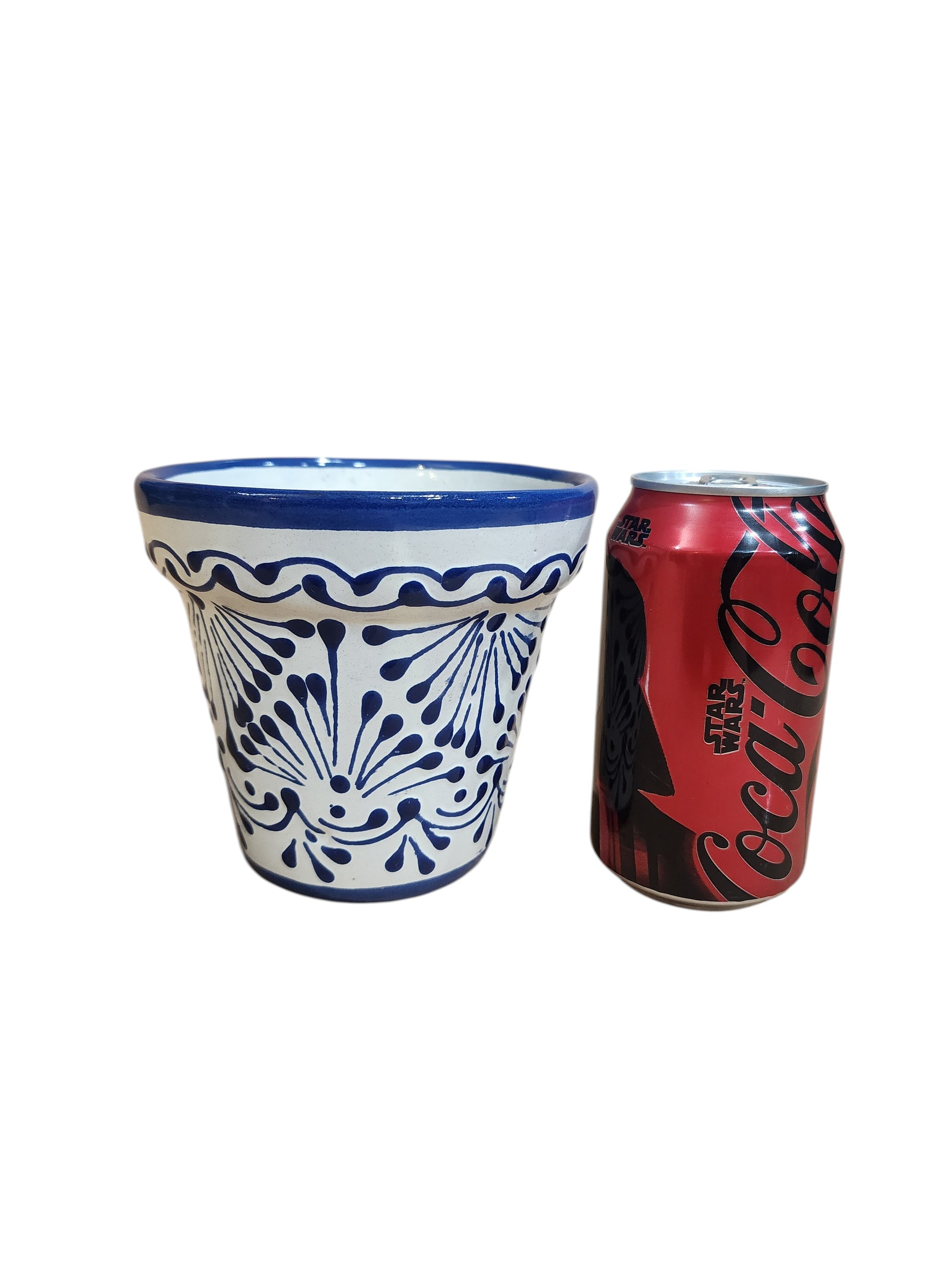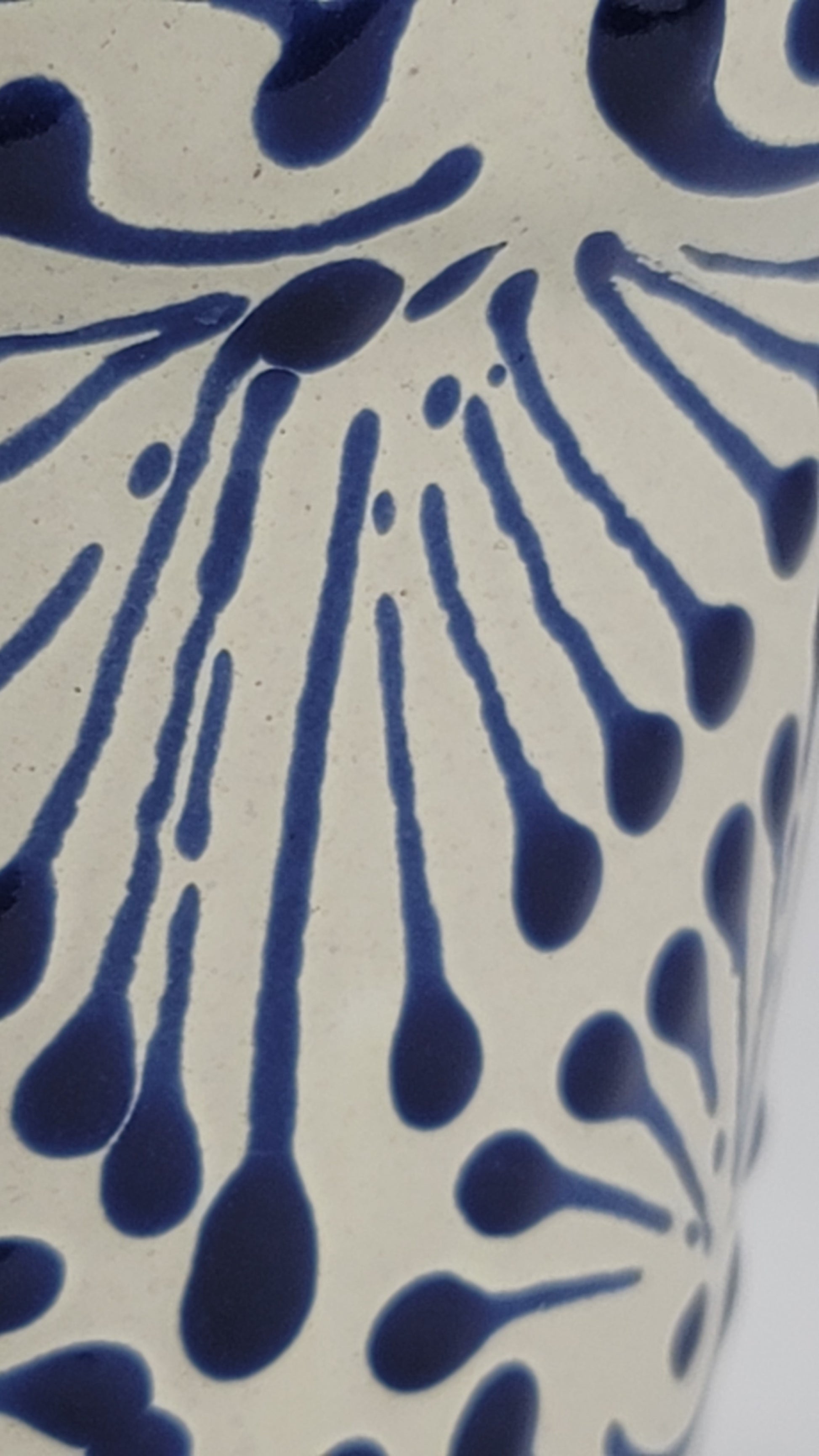 Celebrate authentic Mexican craftsmanship with this charming mini ceramic planter. The deep blue brushwork pops against the cream glaze, making it a fun and functional accent for your home or garden nook.