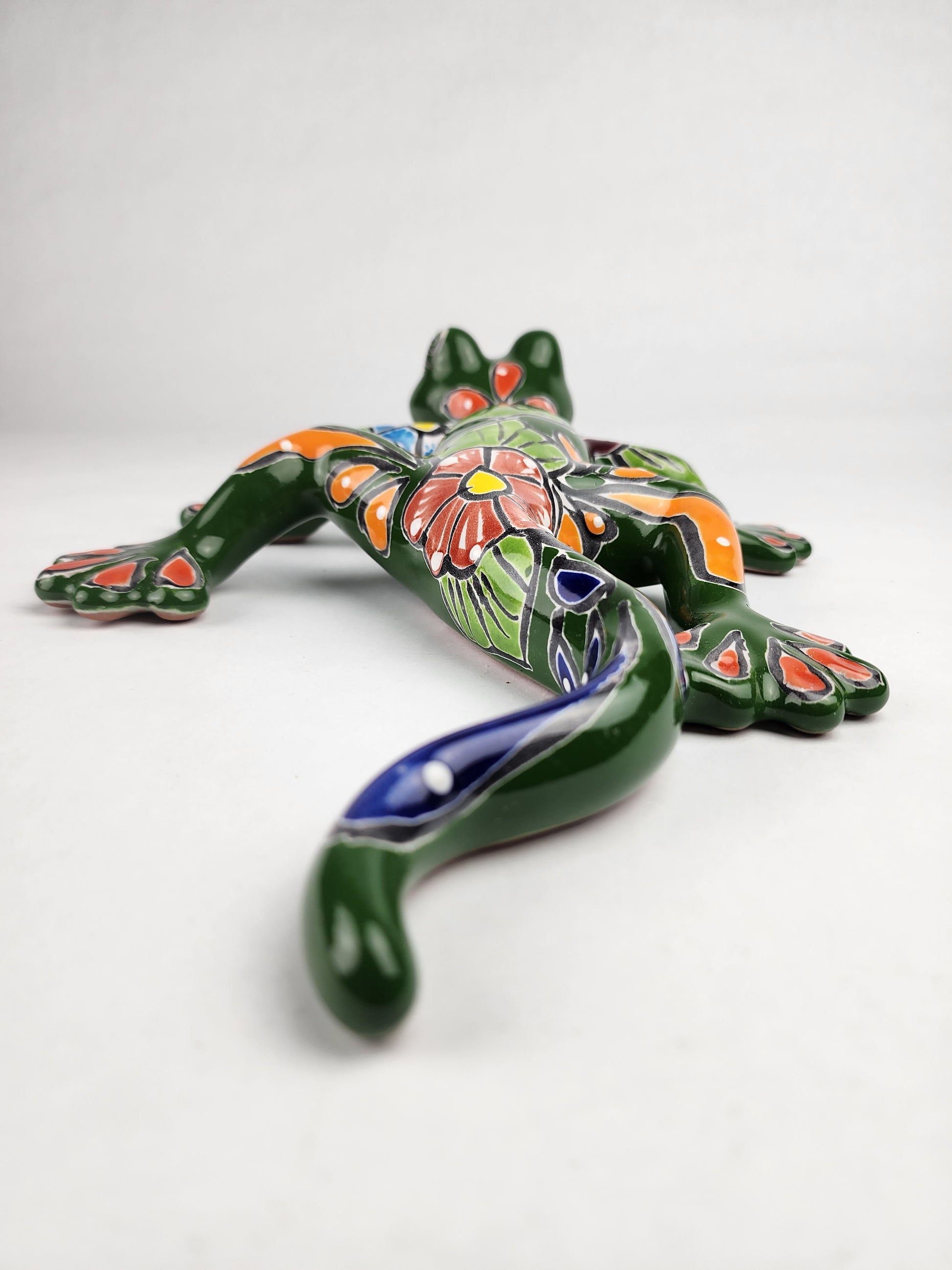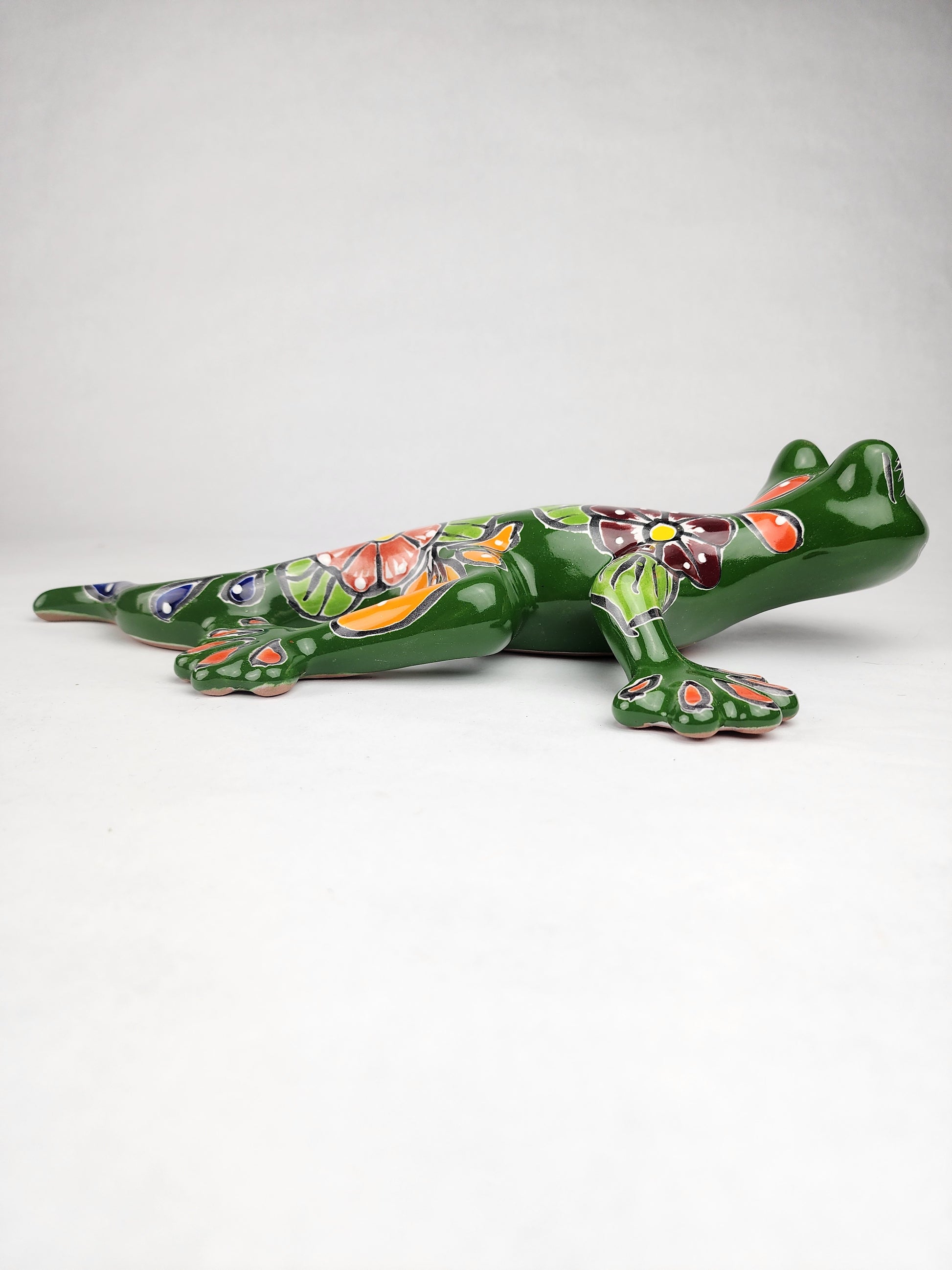 This Green Talavera Salamander is a perfect example of Mexican folk art, handcrafted in ceramic and painted in green with vibrant multicolor details. Whether for your home, garden, or as a thoughtful cultural gift, each piece is unique.