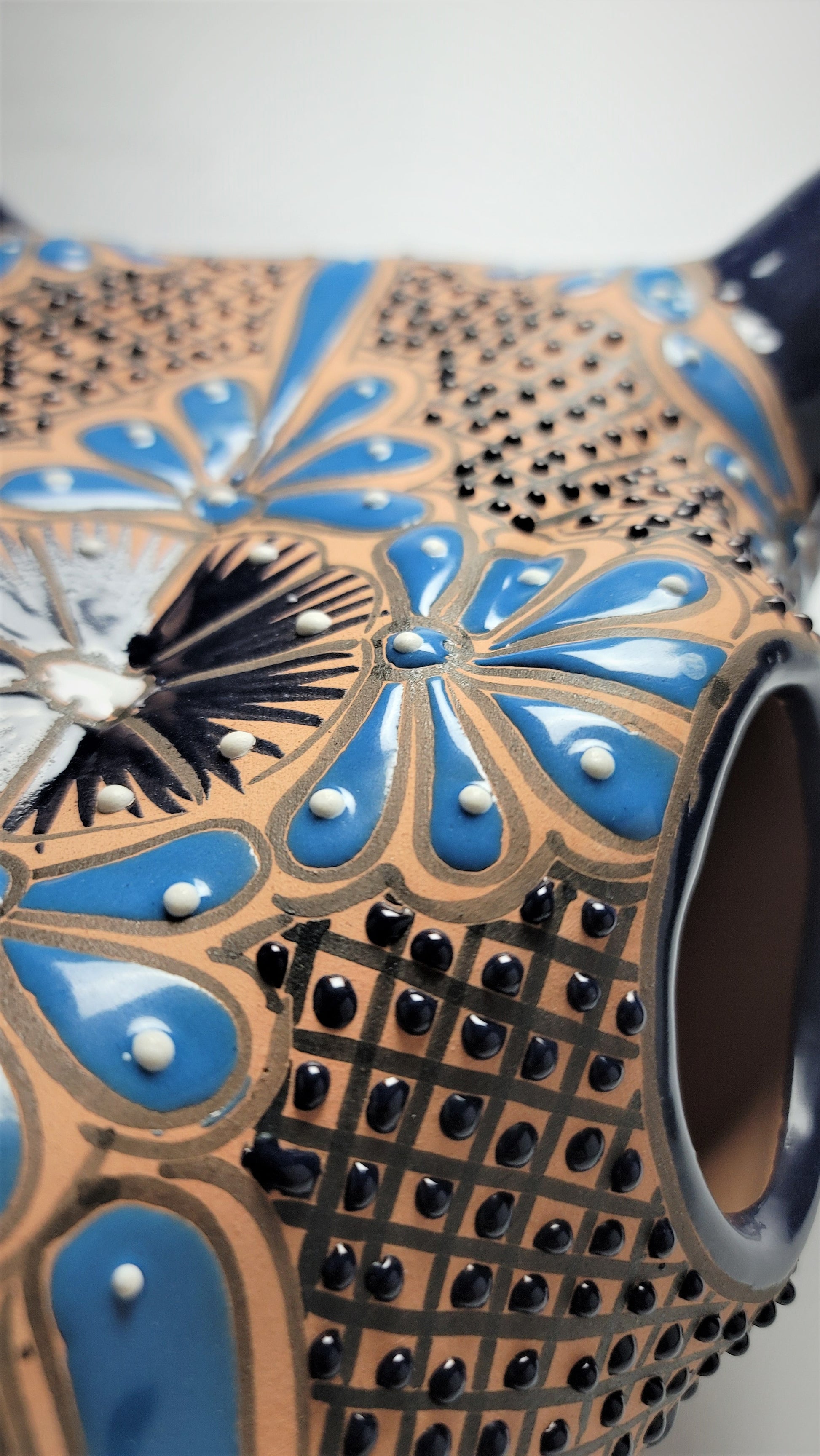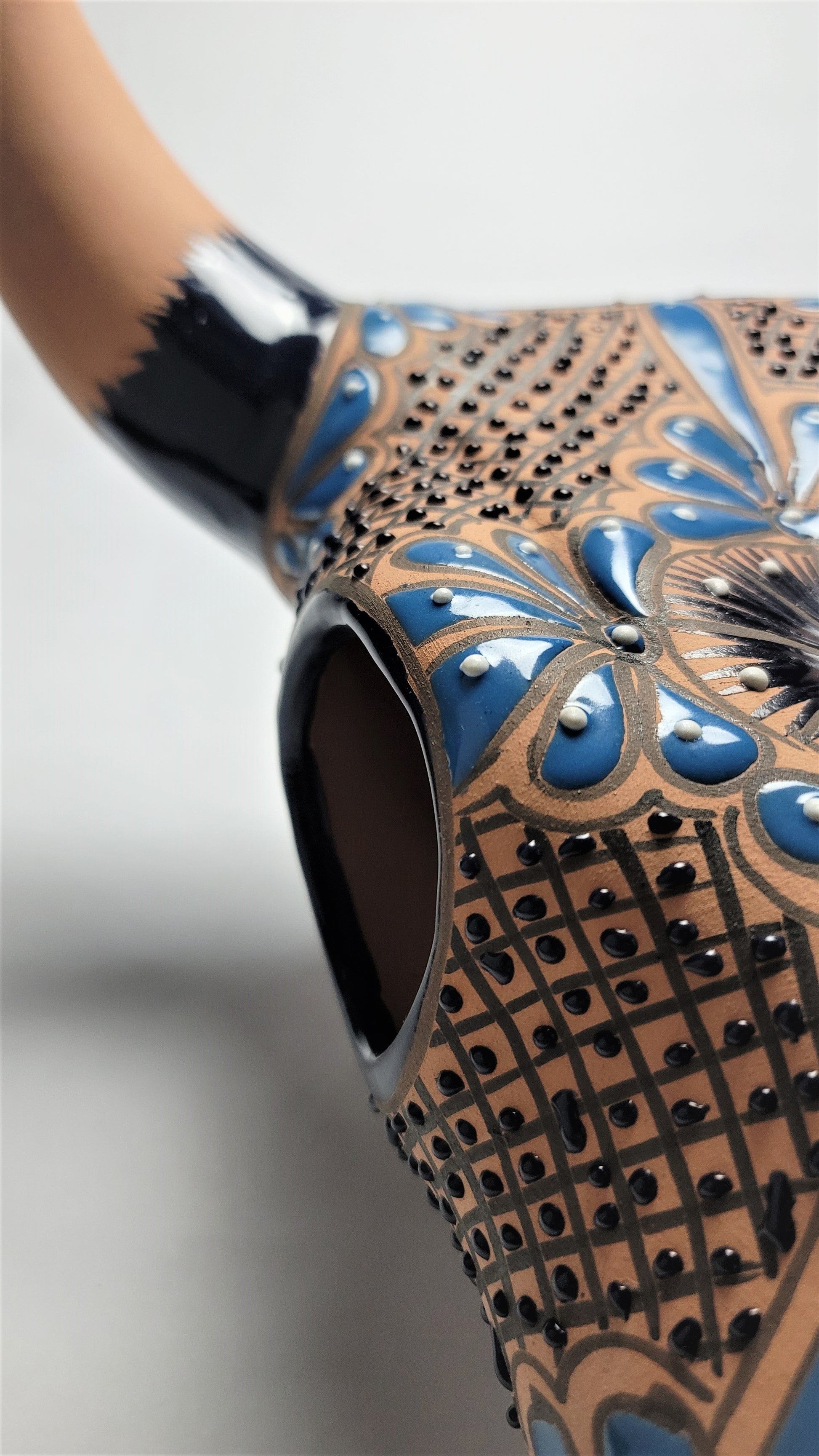 Celebrate the artistry and family culture of Mexico with this stunning Talavera cow skull. A true masterpiece that brings a unique touch to any space! π