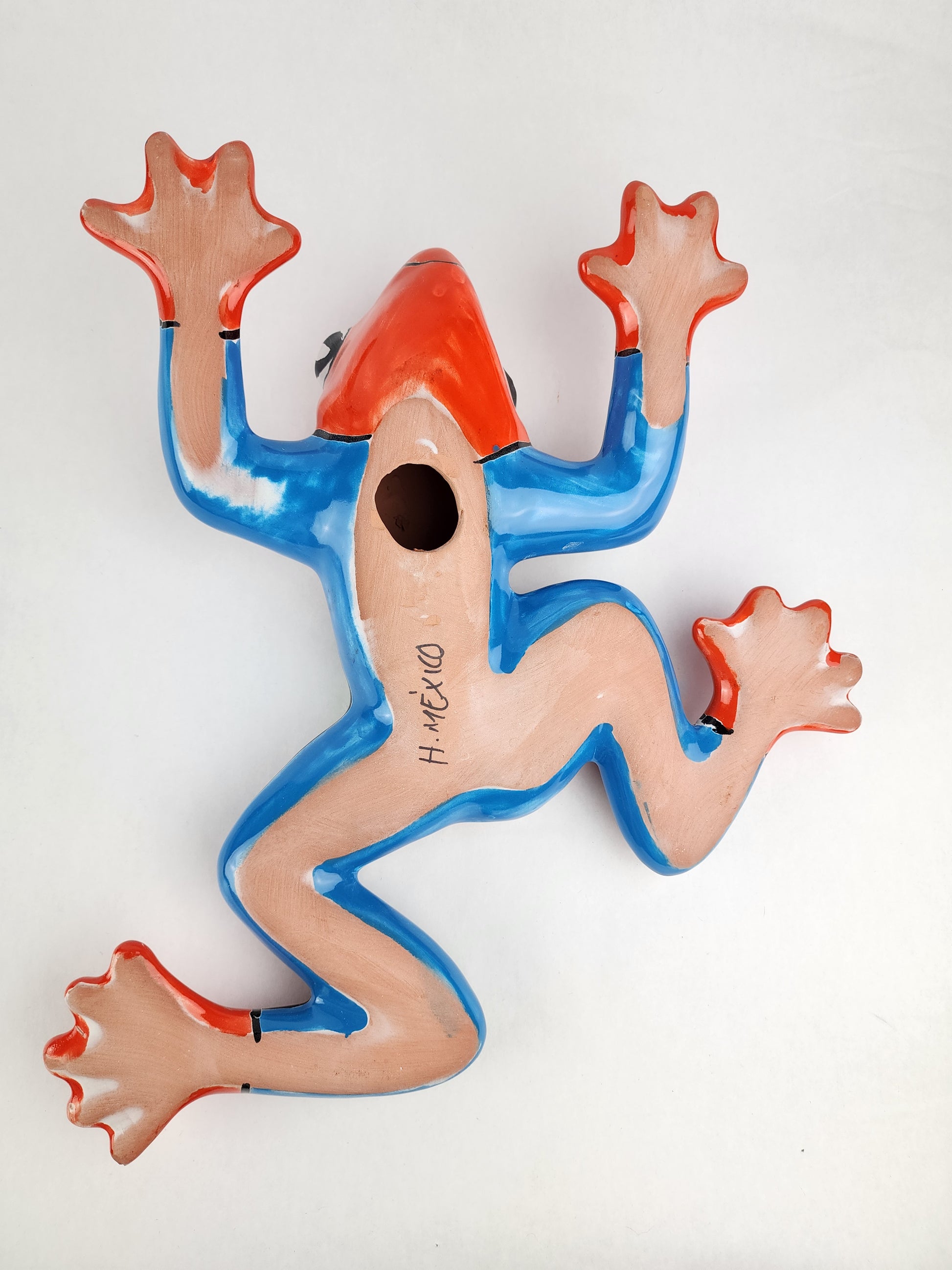This bold orange frog is a standout piece of authentic Mexican folk art!