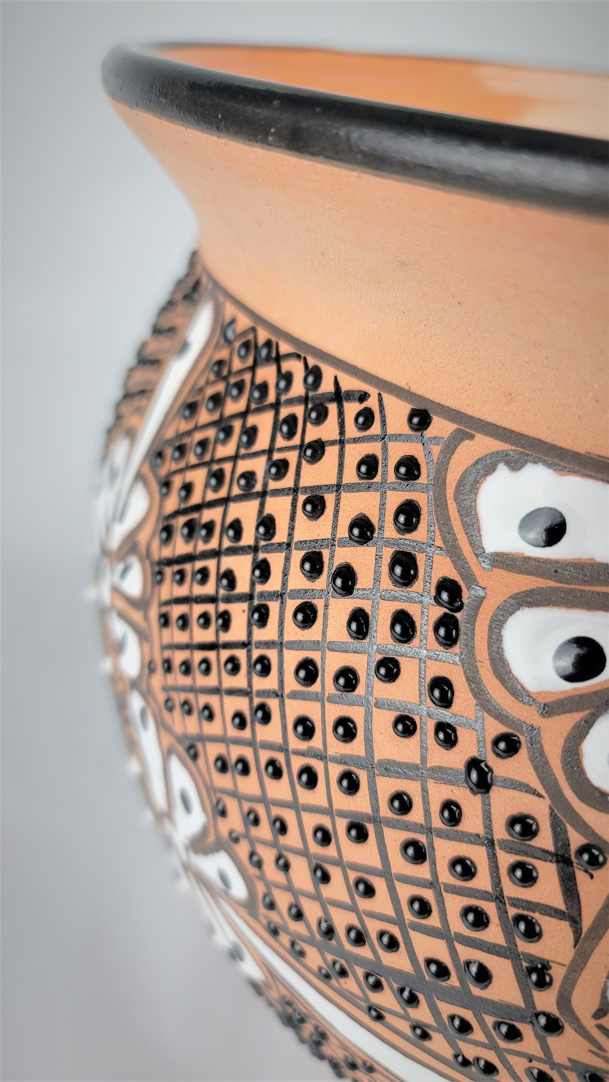 Mexican pottery hand-painted floral design planter black