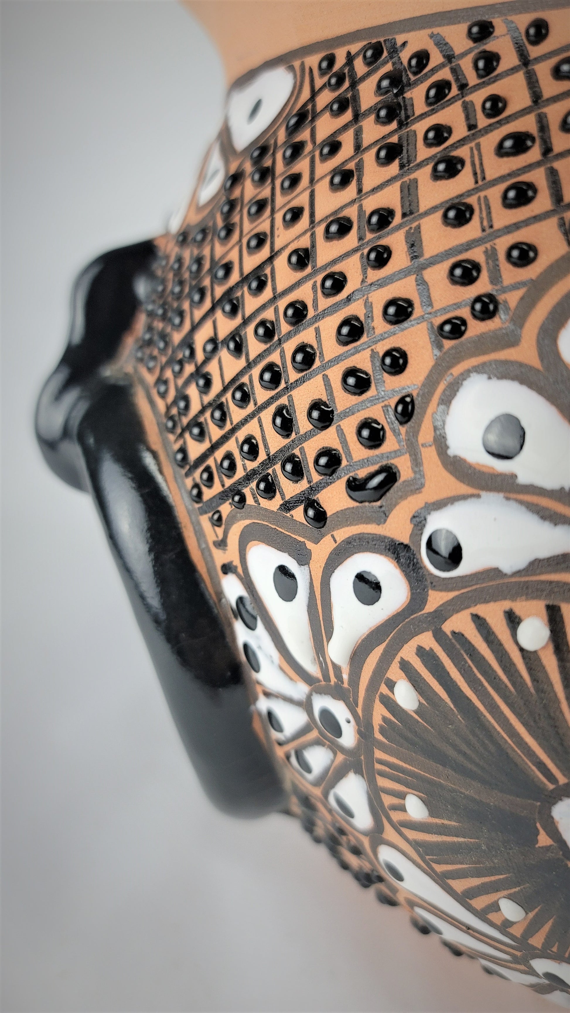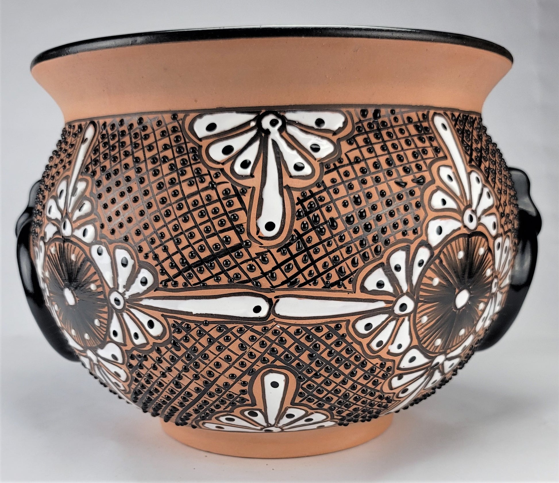 Mexican Pottery Hand-Crafted Floral Design Planter Black