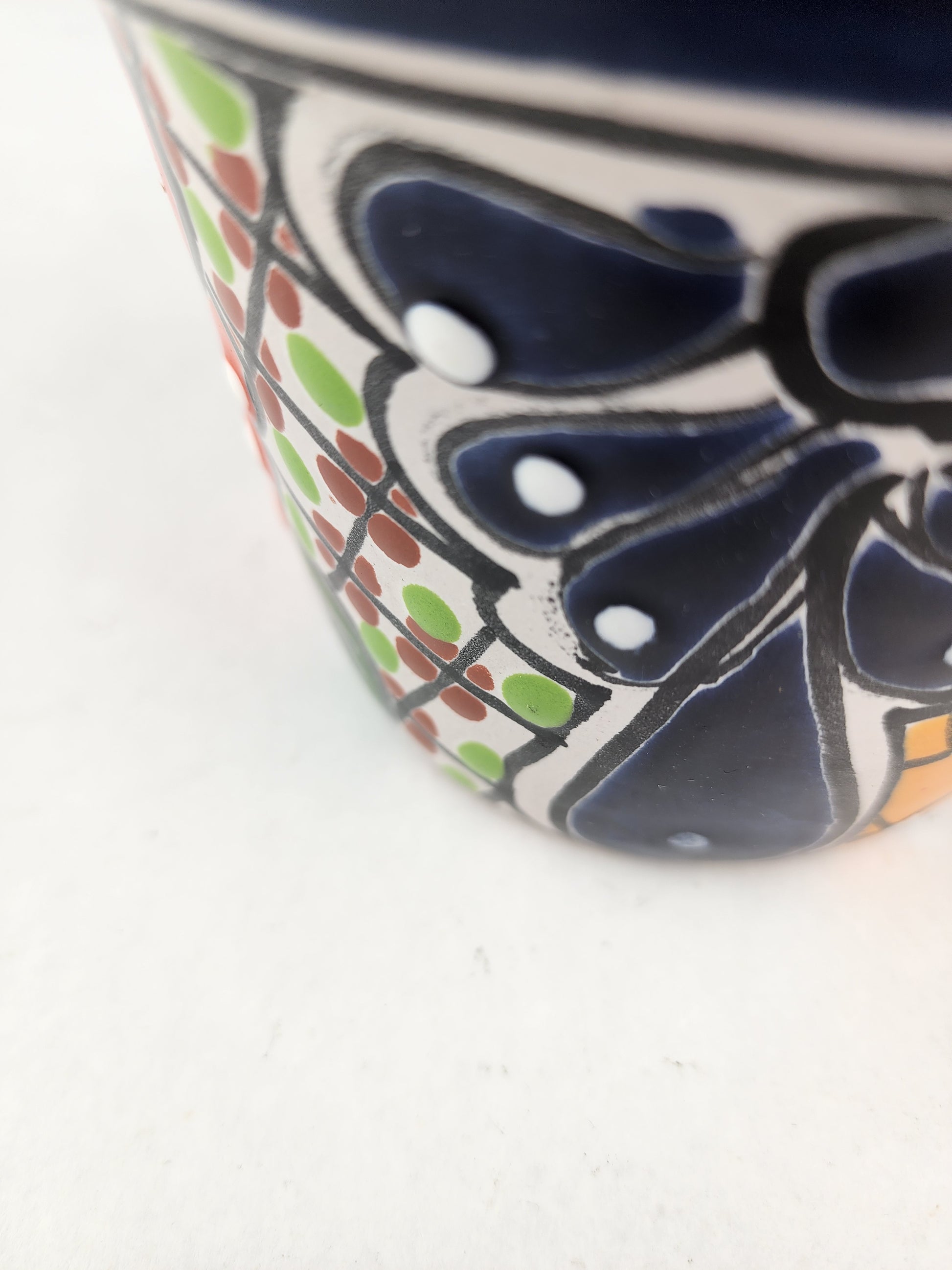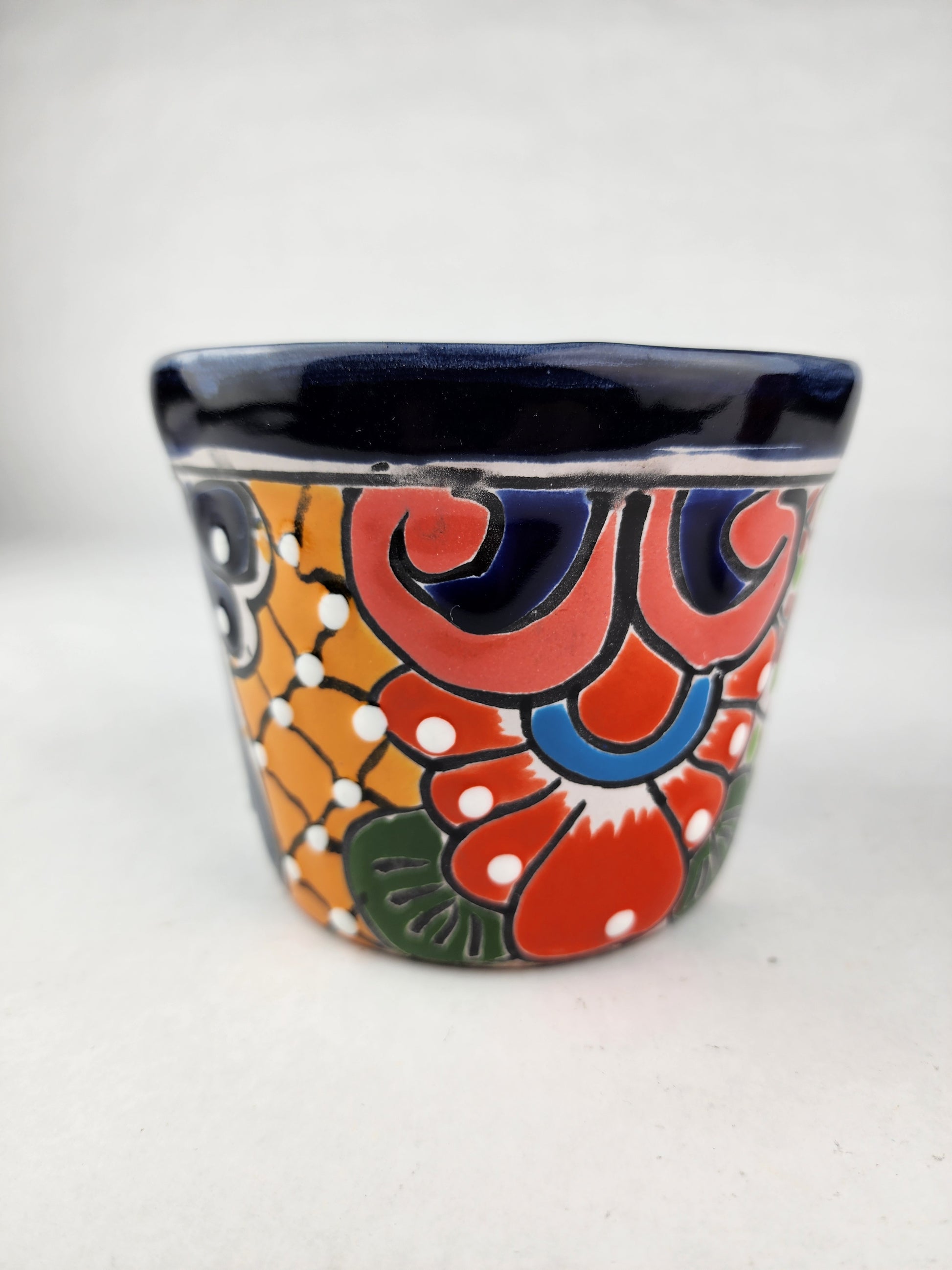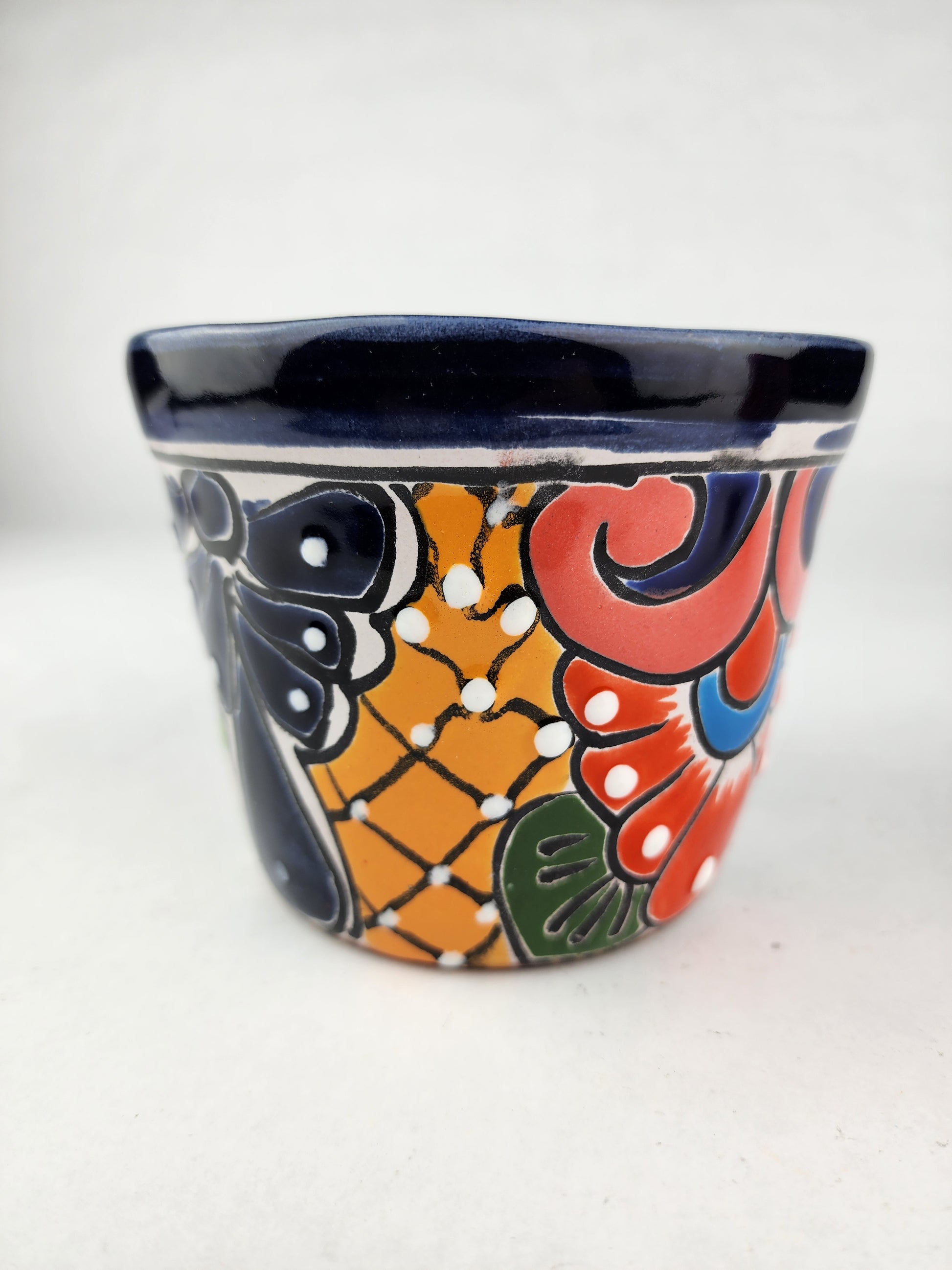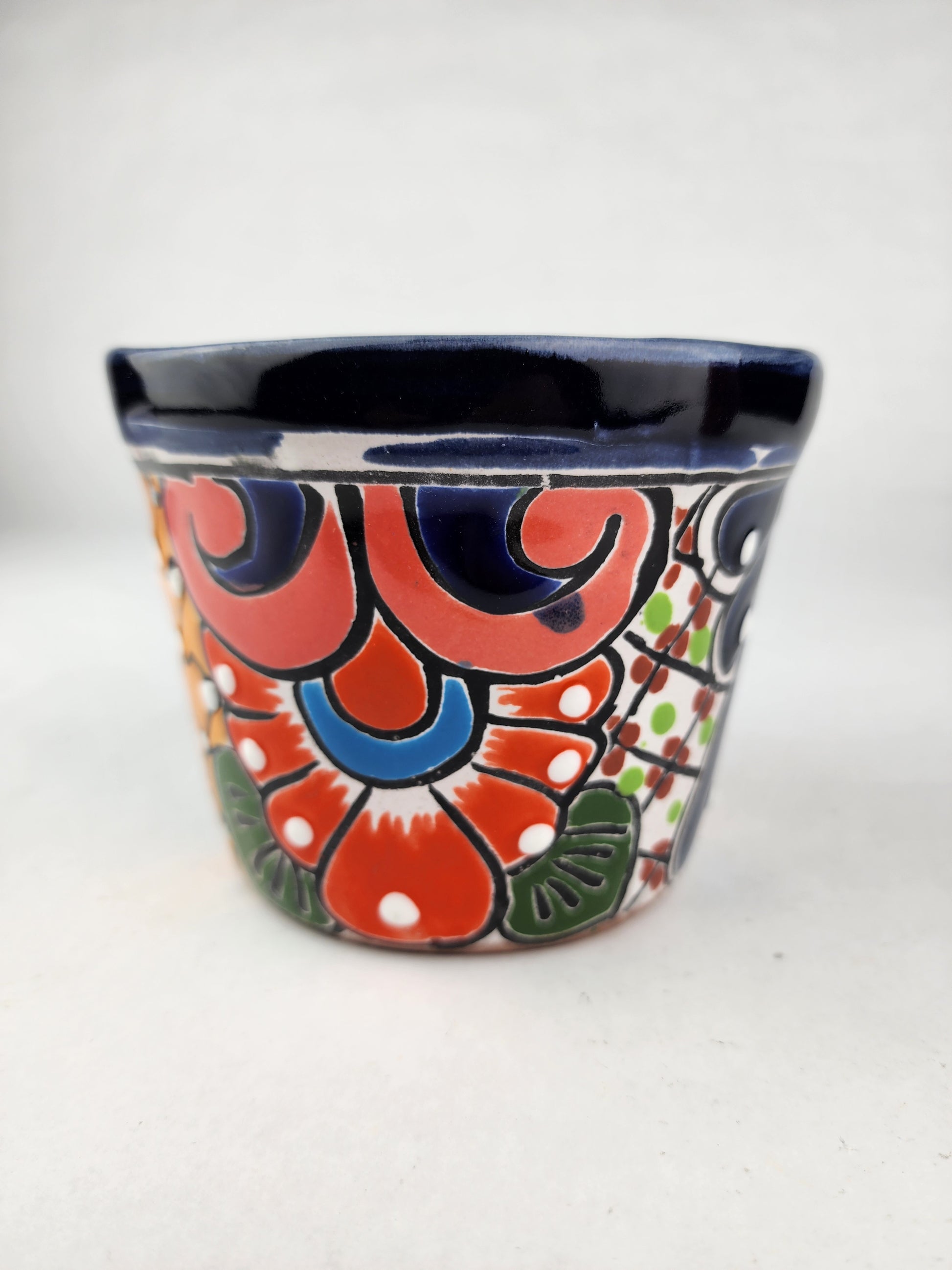 Add a burst of joy to your home with this mini Talavera planter, hand-painted in Mexico with vibrant floral and geometric designs. Though small in size, it makes a bold statement—perfect for succulents, herbs, or as a colorful accent on any windowsill or desk. A delightful handmade piece that brings authentic Mexican folk art into your daily life.