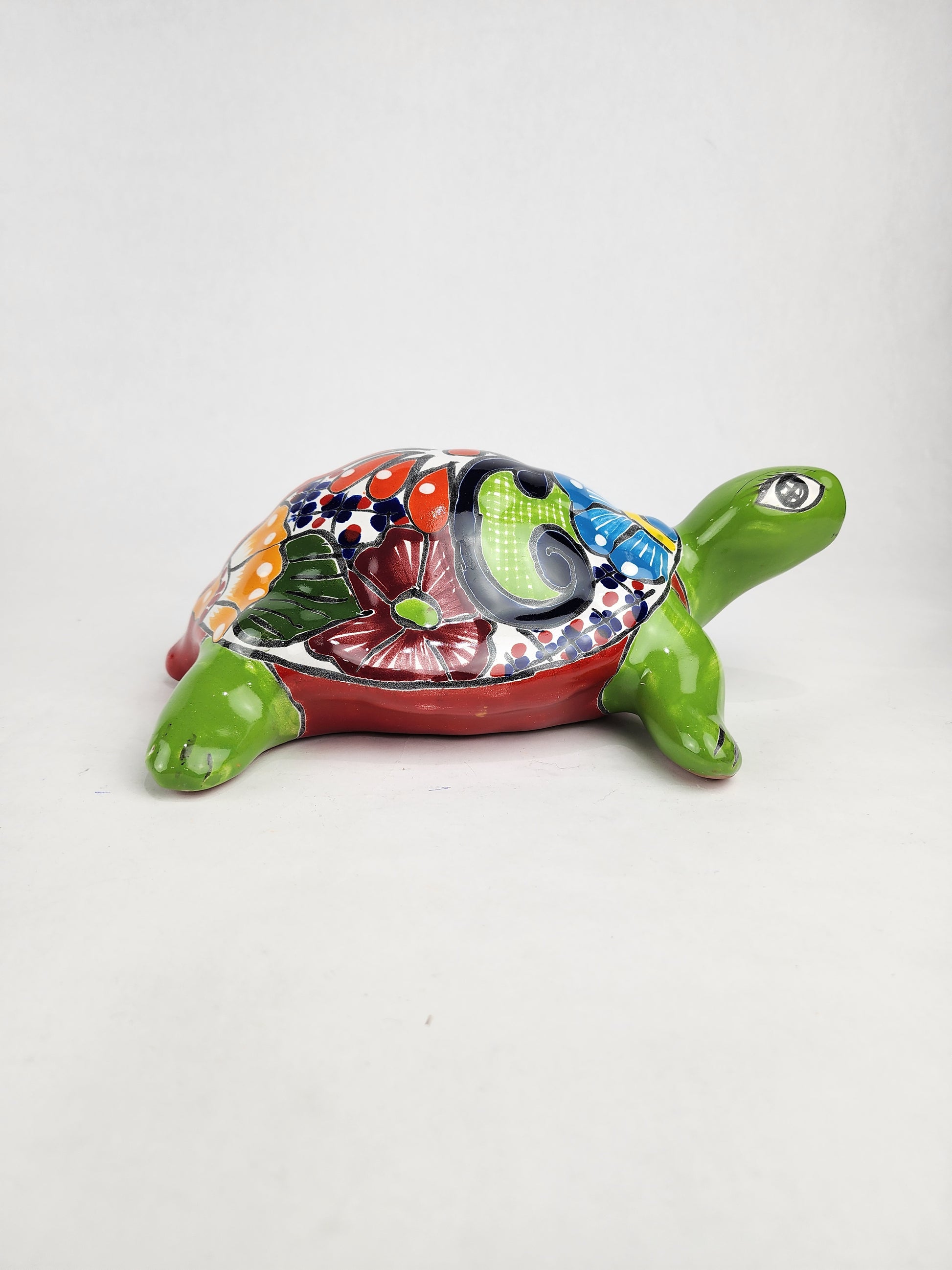 Bring a touch of Mexican folk art tradition to your space with this charming turtle figurine.