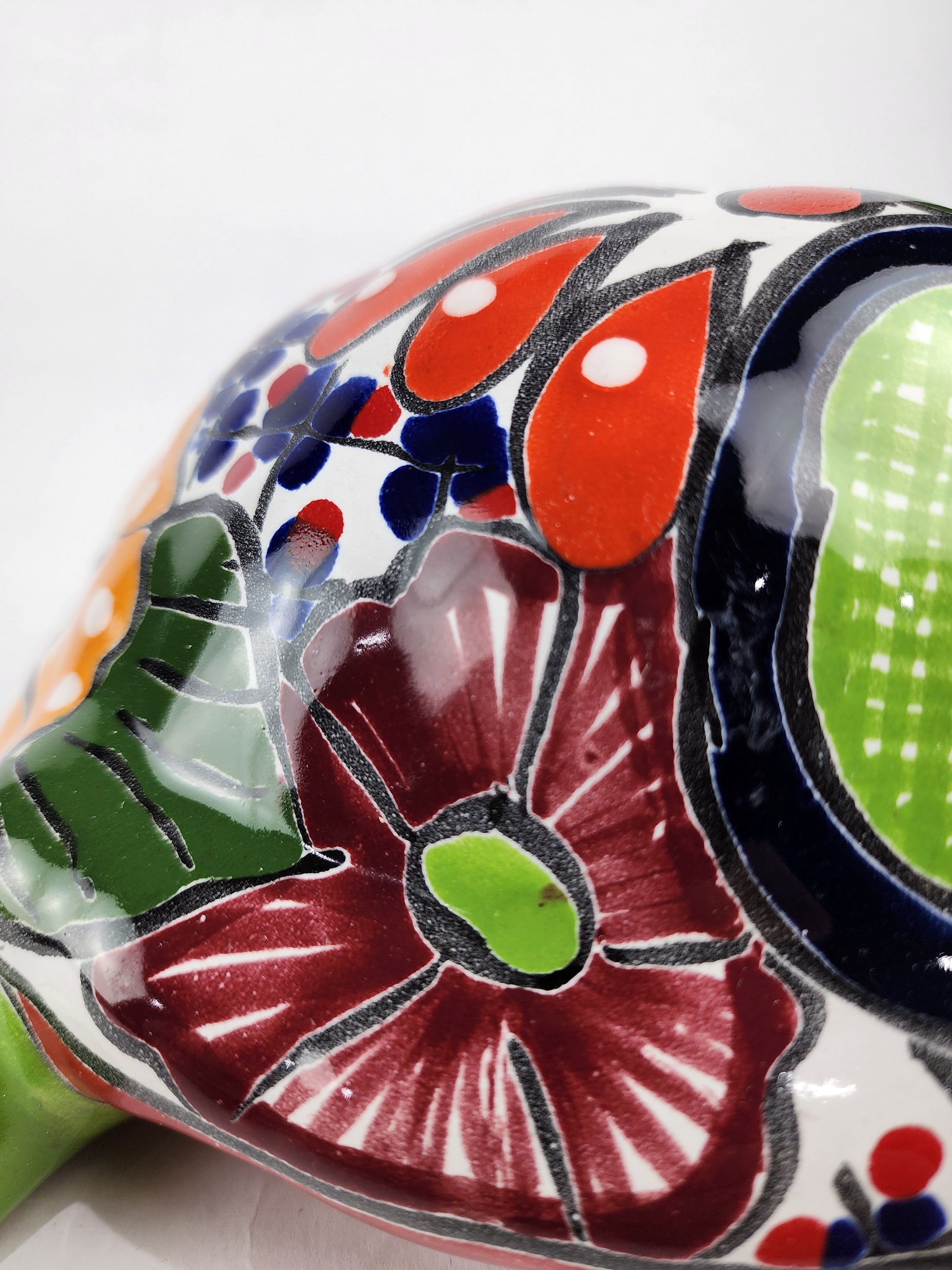 Let this playful Talavera turtle bring a smile to your garden or balcony. Each piece is hand-painted with care and bursting with color, making it the perfect companion for your potted plants or porch steps.
