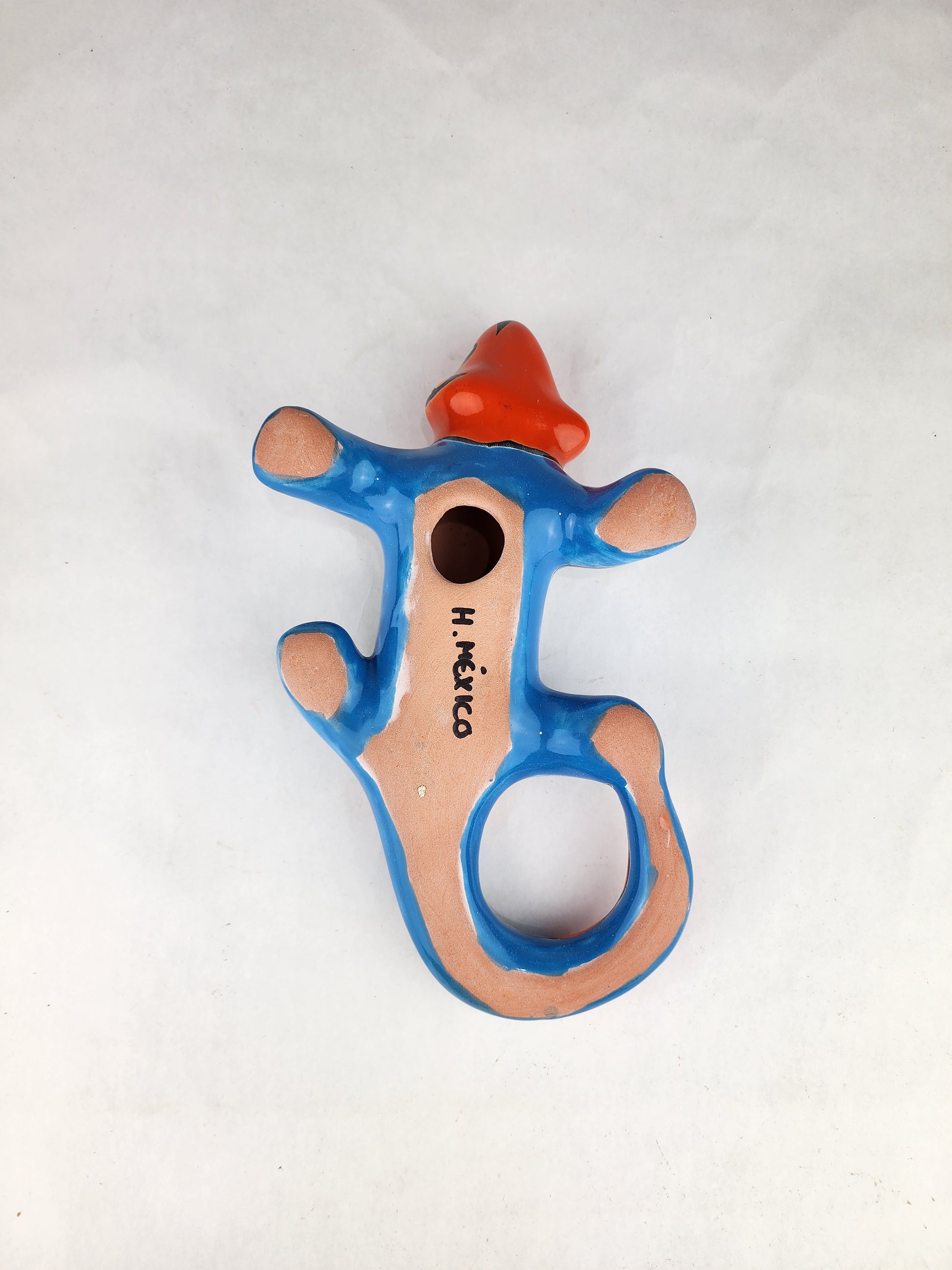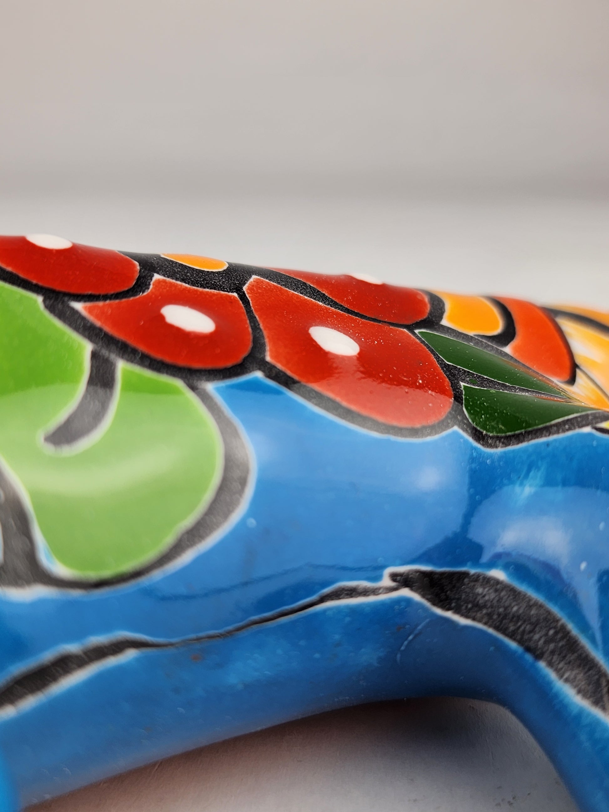 Each figurine is handcrafted and hand-painted by artisan families in Mexico using traditional ceramic techniques. Soft sky blue tones are paired with warm orange accents and classic Talavera-style patterning, giving the piece depth and contrast while remaining grounded in Mexican folk art tradition. Because every iguana is finished by hand, subtle variations in color, glaze, and pattern naturally occur, making each piece one of a kind.