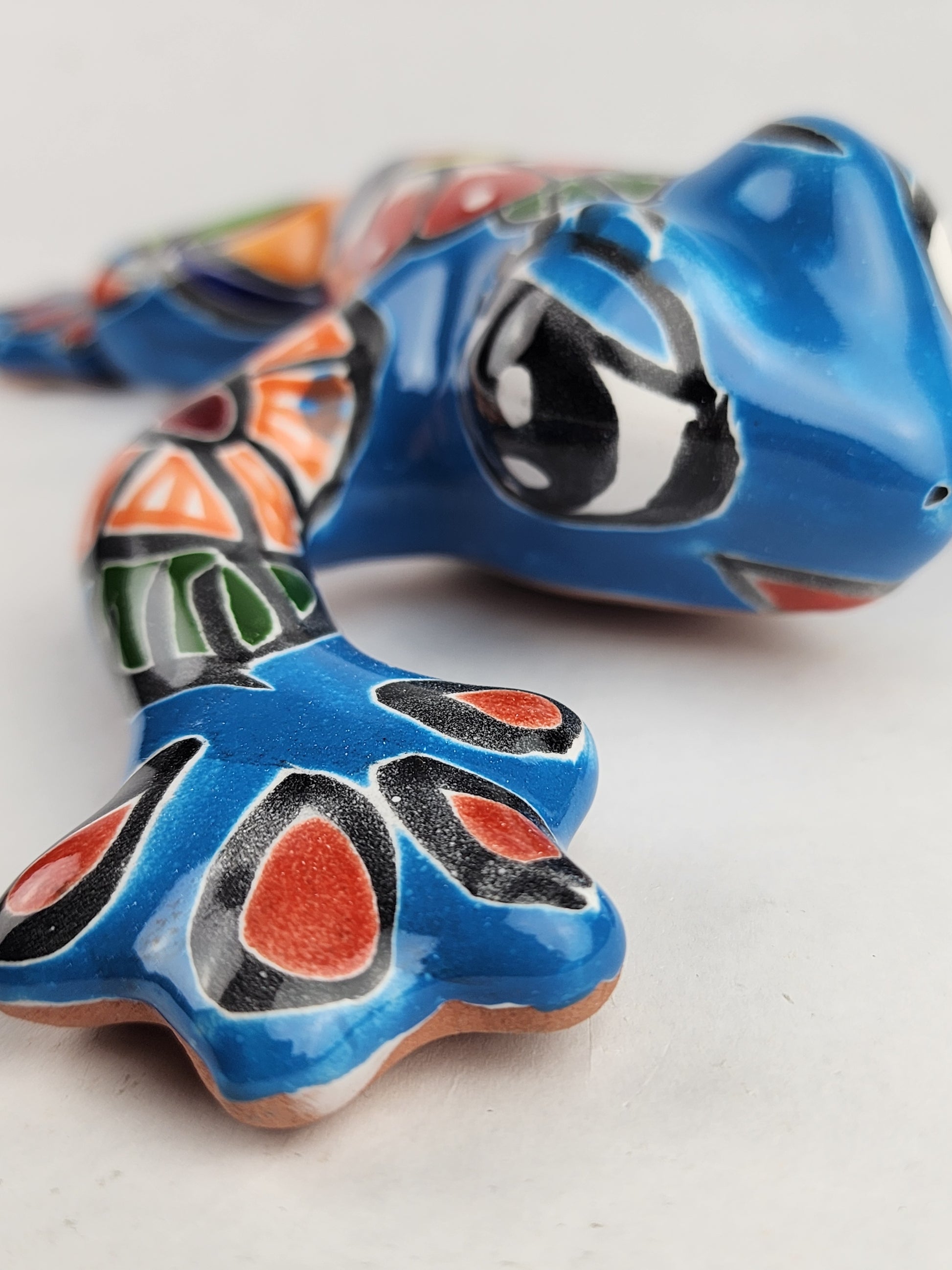 Bright and inviting, this sky blue Talavera-style ceramic frog brings a calm yet playful presence to any space. Its relaxed posture and soft blue tones make it a versatile decorative accent that feels equally at home outdoors or indoors.