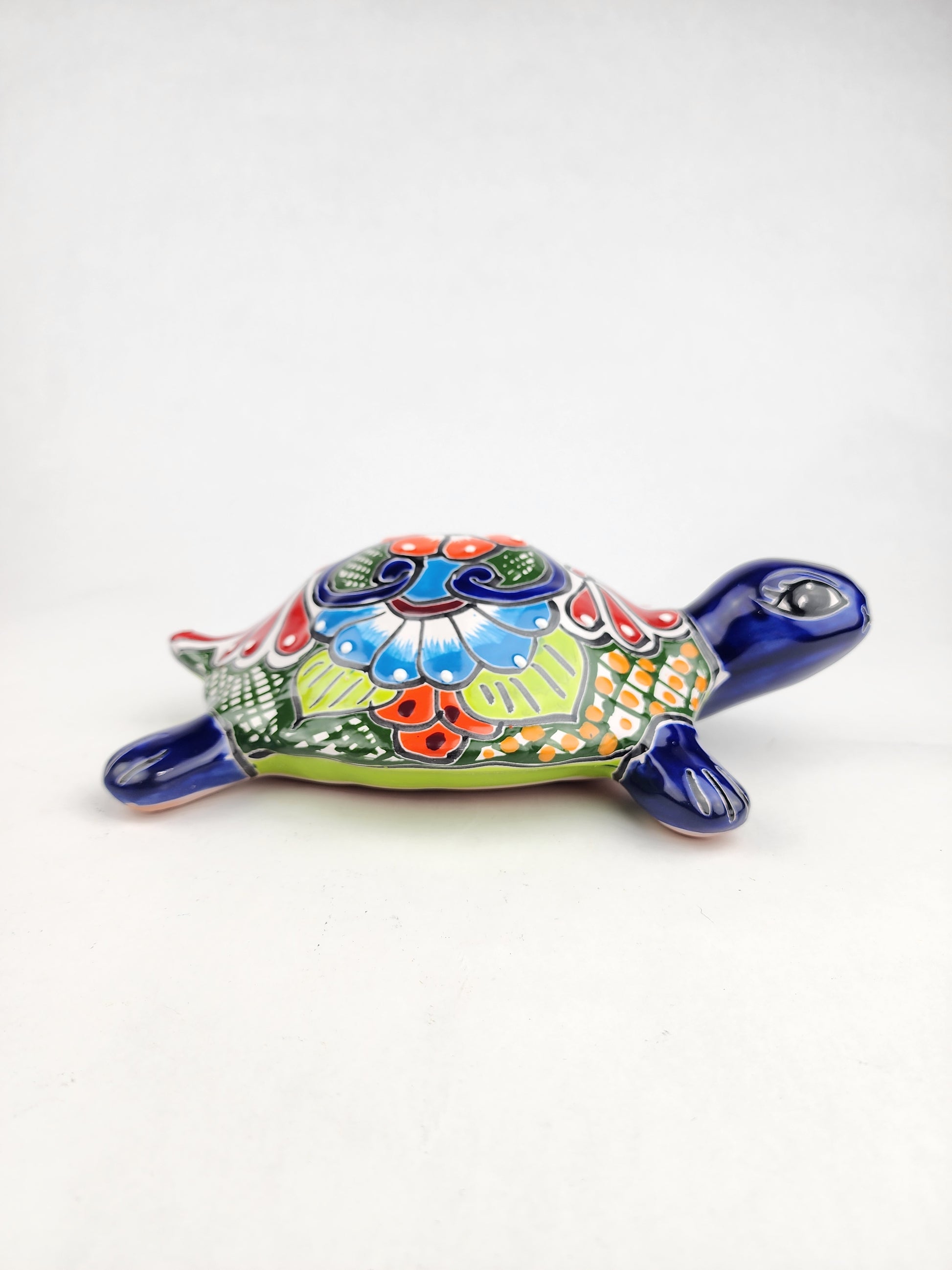 Bring a touch of Mexican folk art tradition to your space with this charming turtle figurine.